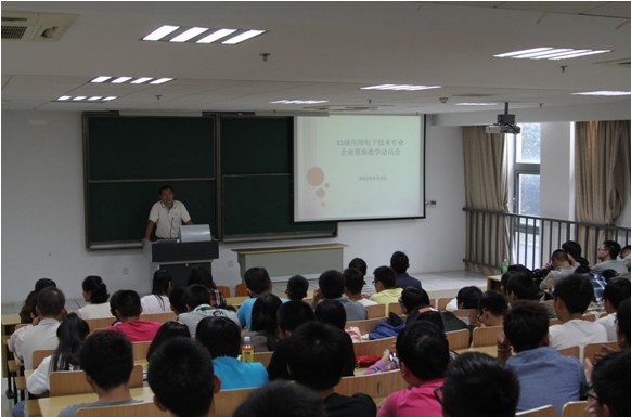 为促进2011级应用电子技术专业学生企业现场教学工作的顺利开展,加强学生对该环节的重视,强化管理,确保质量,9月6日中午,信息工程系在应天校区103教室召开了2011级应用电子技术专业企业现场教学动员会。系副主任姜春艳,电子与通信教研室全体教师出席了本次动员会。会议由电子与通信教研室主任赵书安主持。