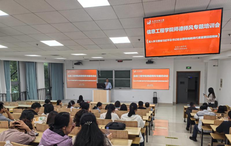 为深入贯彻落实立德树人根本任务,进一步加强新时代教师队伍建设,全面提升教师思想政治素质和职业道德水平,10月14日下午,信息工程学院在应天校区教学楼201阶梯教室召开师德师风专题培训会。会议特别设置专题环节,深入学习领会习近平总书记给全国特岗教师代表重要回信精神的核心要义,引导全体教师坚定理想信念、陶冶道德情操、涵养育人智慧。学院领导班子成员及全体教职工参加了本次会议。