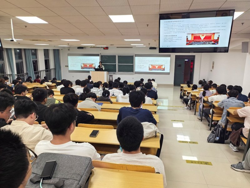 为引导青年学子树立正确的理想信念,积极向党组织、团组织靠拢,10月14日晚18时,信息工程学院在教学楼 101 阶梯教室开展 2025 级新生党团教育活动。学院学生党支部书记张铁成、团总支副书记周颖担任主讲人,全体2025级新生参加此次活动。