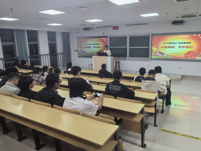 为引导青年学子树立正确的理想信念,积极向党组织、团组织靠拢,10月14日晚18时,信息工程学院在教学楼 101 阶梯教室开展 2025 级新生党团教育活动。学院学生党支部书记张铁成、团总支副书记周颖担任主讲人,全体2025级新生参加此次活动。