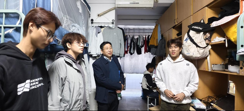 9月13日至10月23日,校领导带队,院领导、辅导员代表陪同,深入学生宿舍开展实地走访调研。走访组一行细致查看宿舍卫生清洁、物品摆放、安全用电、设施维护等情况,与学生代表面对面亲切交流,详细询问生活需求、学业进展及对宿舍管理的意见建议。针对部分宿舍存在的收纳整理不规范、安全防范意识薄弱等问题,现场提出针对性整改建议;针对学生反映的生活服务保障诉求,逐一记录并建立台账,明确责任分工与办结时限。领导班子带头下沉一线、靠前指挥,既传递了学校对学生成长的关怀关爱,也为创建工作精准施策、靶向发力提供了第一手资料,推动管理服务与学生需求精准对接。