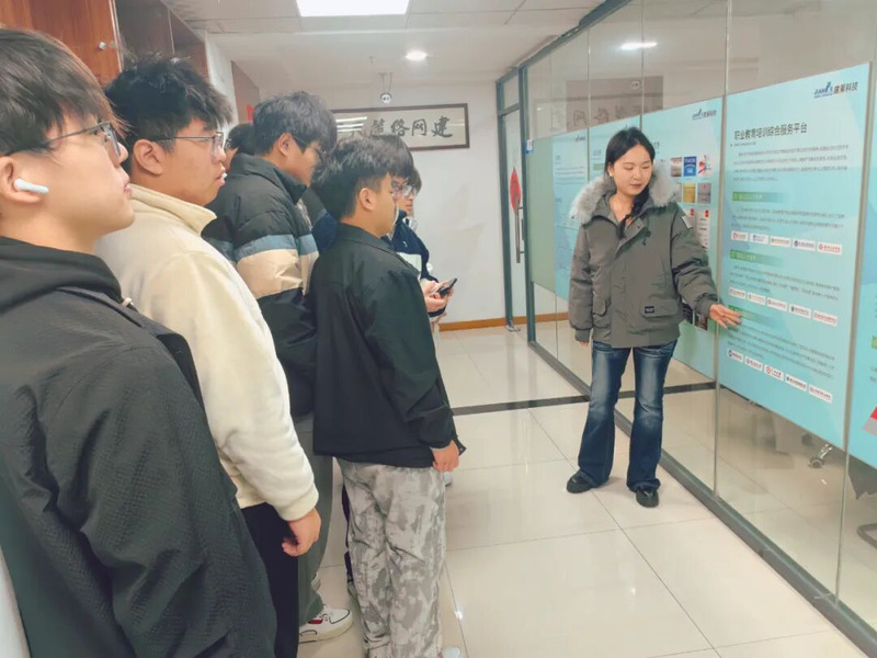 为积极响应国家关于深化产教融合、促进教育链与产业链有机衔接的政策导向,进一步增强高职院校学生对计算机网络技术领域的认知与兴趣,2025年11月17日,信息工程学院邱雨楠老师带领25级计算机网络技术专业的学生们前往南京建策科技股份有限公司进行实地参观学习。此次活动旨在帮助学生建立专业认知,了解计算机网络技术在各个领域的应用,明确专业学习的目标和方向,熟悉计算机网络技术专业的职业岗位和工作内容,为未来的职业规划提供参考。