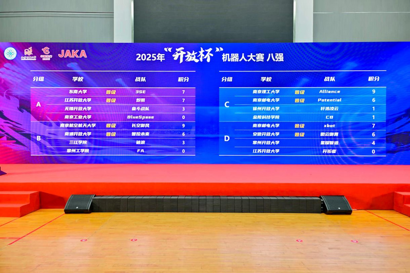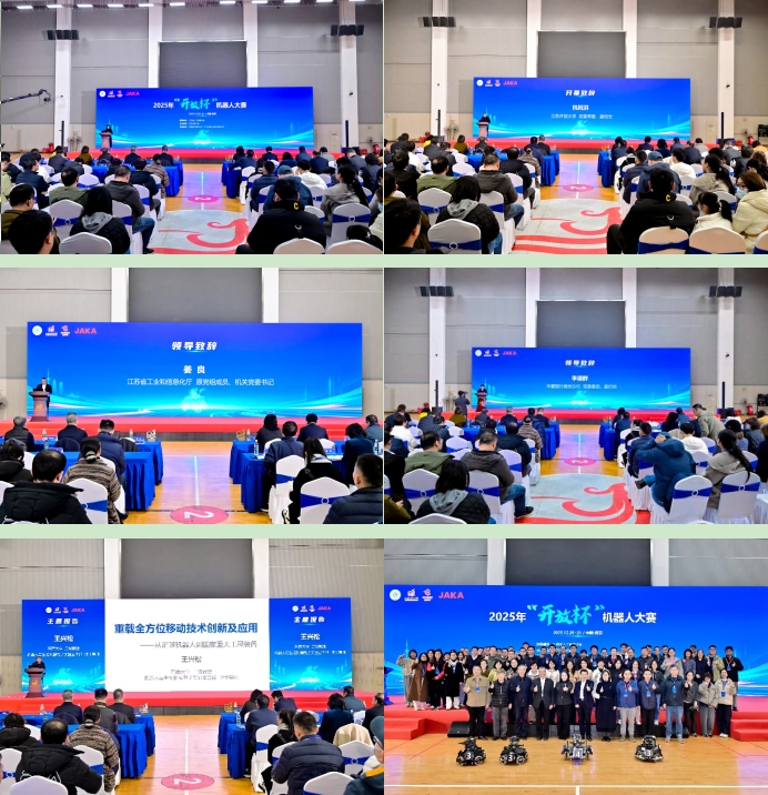2025年12月21日,第二届“开放杯”机器人大赛于江苏开放大学应天校区体艺馆顺利闭幕。来自省内外各开放大学及普通高校的16支代表队、近200名师生齐聚一堂,共同参与了机器人技术竞技与学术交流活动。本届大赛由江苏开放大学主办,并获江苏省人工智能学会悉心指导,以及华夏银行南京分行与节卡机器人股份有限公司的鼎力支持。大赛旨在激发广大师生对机器人技术的兴趣与创新潜能,推动理论知识与实践应用的深度融合,加强高校间的技术交流与合作,共同促进机器人技术领域的创新与可持续发展。