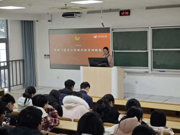 为深入贯彻落实党的二十大精神,着力为党培养和输送坚定的青年政治骨干,引导青年学生自觉用马克思主义中国化时代化最新成果武装头脑、指导实践,12月19日中午,信息工程学院在应天校区教学楼101室举行2025年“青年马克思主义者培养工程”(以下简称“青马工程”)培训班开班仪式。本期培训班全体学员及部分往届学员代表齐聚一堂,共同开启新一阶段的集中学习和思想淬炼。